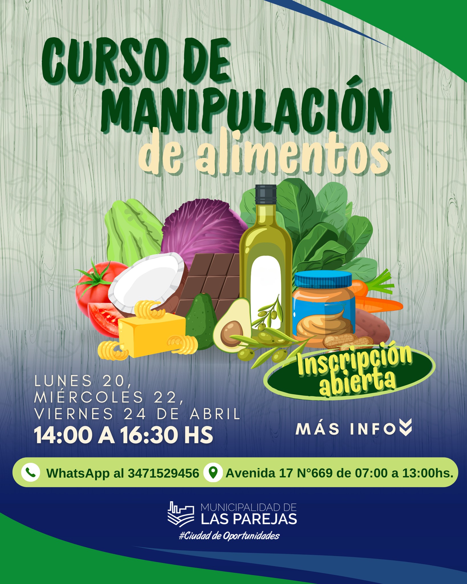 Continuar LeyendoLunes 20, Miércoles 22 y Viernes 24 de abril 14:00 a 16:30hs. Casa de bicentenario. Para inscribirse dirigirse a la Oficina de Bromatología, sanidad animal y control de zoonosis. Dirección: Avenida 17 N° 669. De 7:00 a 13:00 hs o por whatsapp al 3471529456