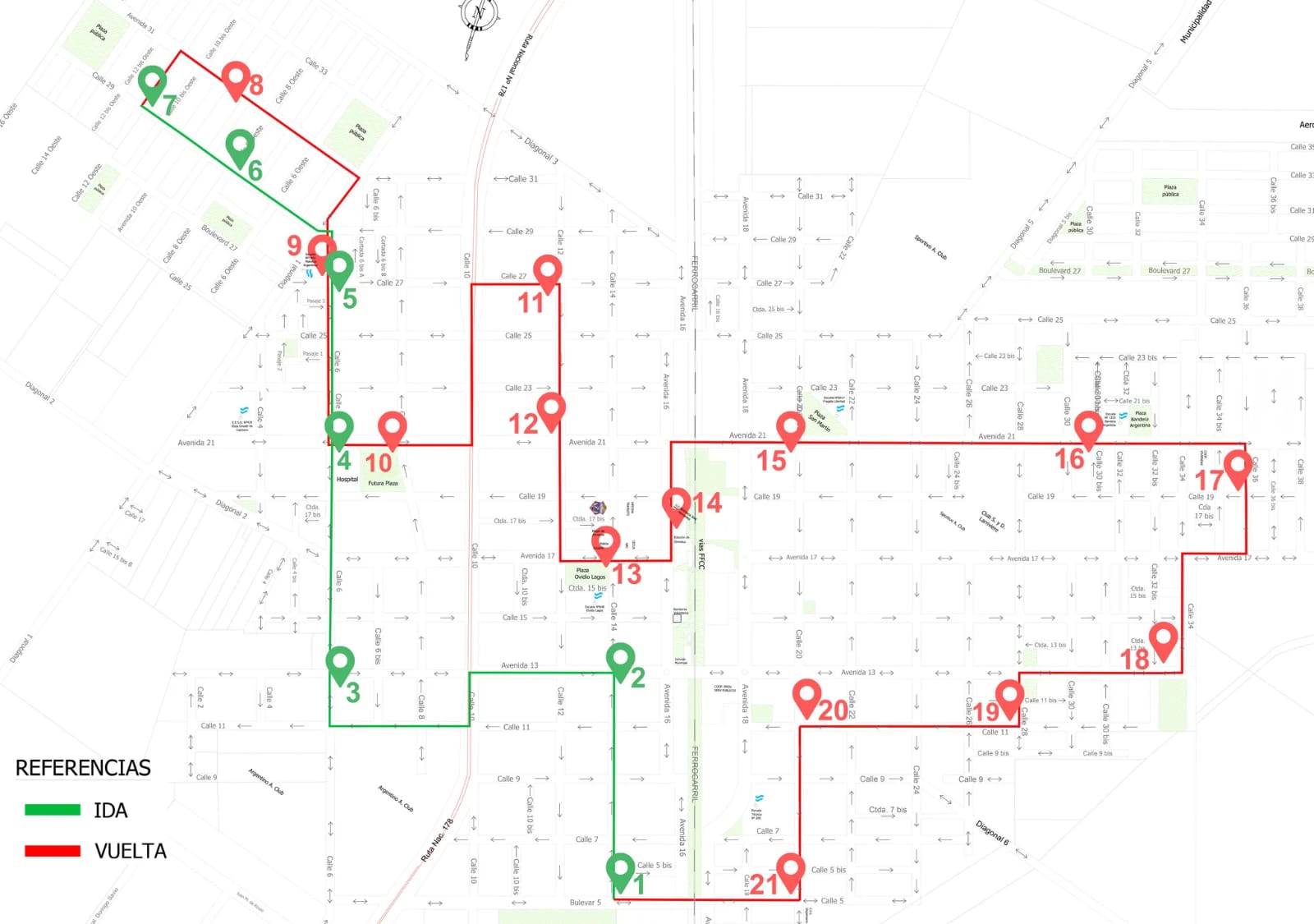 | 4 | Hospital – IDA | Calle 6 y Av 21 | 11:28 | 12:16 | 13:04 |